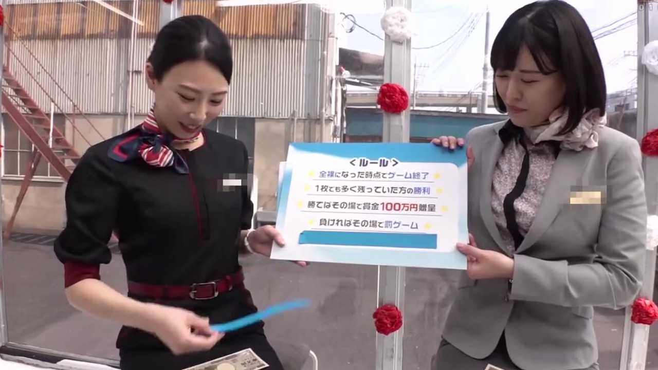 【CAと野球拳】マジックミラー号で素人CAと服を脱がせ合い!